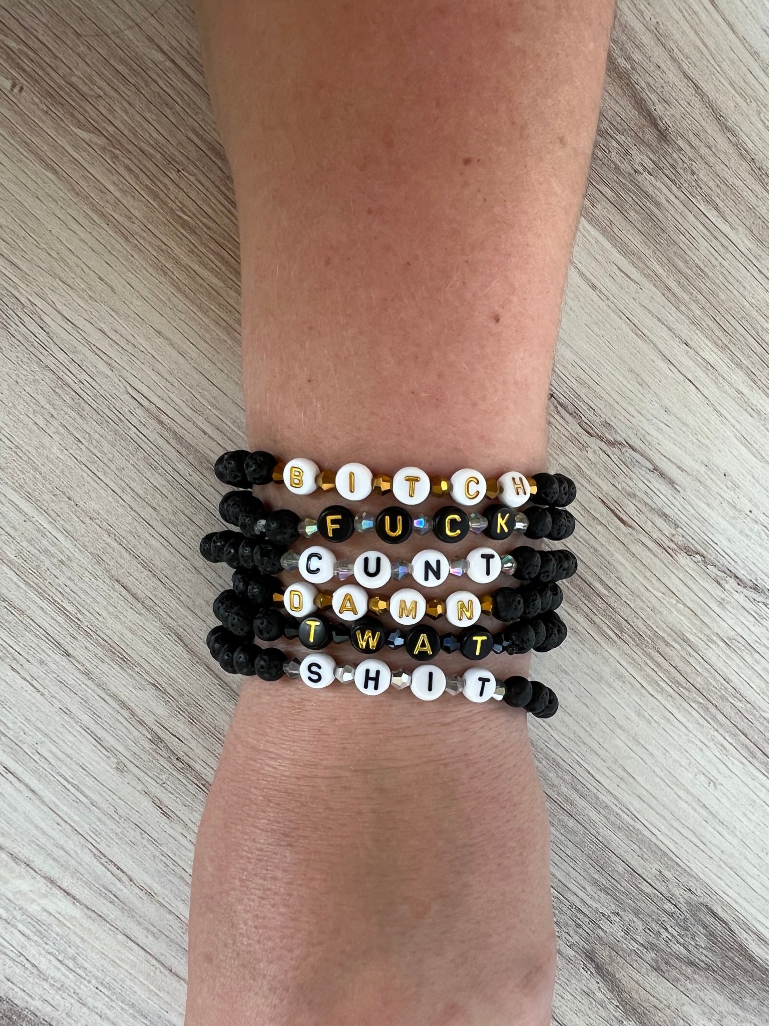 Each bracelet is a standard 7-inch size and ready to drop the F-bomb (or any of its foul-mouthed friends) straight from your wrist. Whether you’re channeling your inner rebel, making a statement, or just need a daily reminder that life’s too short to be polite all the time… these bracelets have your back!